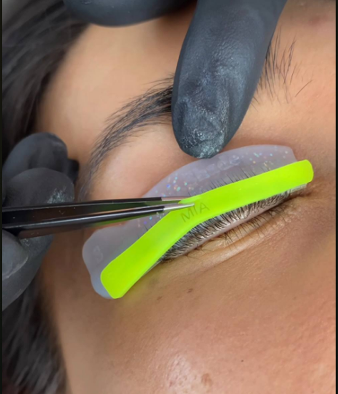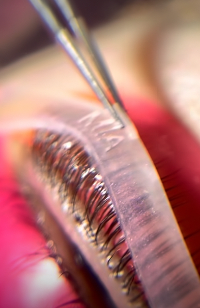 Kompensacja czyli technika trzymania rzęs na formach podczas zabiegu liftingu rzęs.